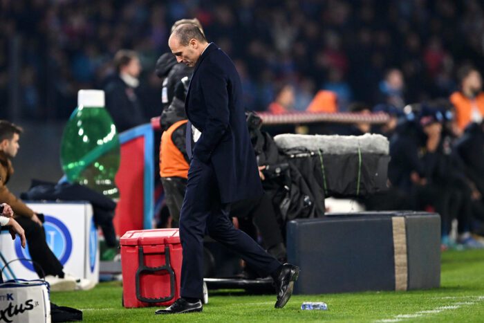 NAPLES, ITALY - JANUARY 13: Massimiliano Allegri Juventus coach reacts during the Serie A match between SSC Napoli_Juventus at Stadio Diego Armando Maradona on January 13, 2023 in Naples, Italy. (Photo by Francesco Pecoraro/Getty Images)