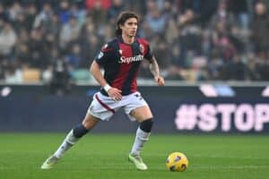 Bologna’s Riccardo Calafiori: “It was wonderful to return to the Olimpico and face my ex-teammates.”