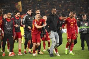 Roma dedicate win over Milan to Evan Ndicka who celebrates with team at full-time